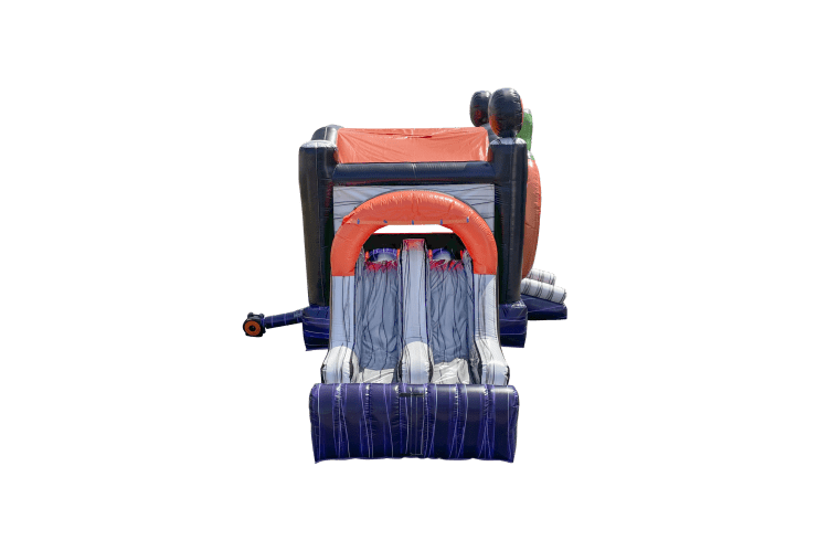 Step into the ultimate Halloween party centerpiece — The Great Pumpkin Combo! This inflatable bounce house and slide combo features a giant grinning jack-o’-lantern entrance, playful pumpkin toppers, and a spooktacular purple-and-black design that’s perfect for fall festivals, school events, or backyard Halloween bashes.